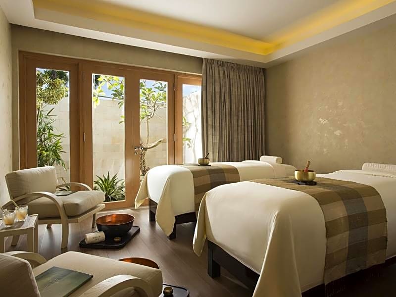 Overlooking the garden, this spacious suite features an outdoor hot tub, ample seating space and a private bathroom with luxurious amenities.